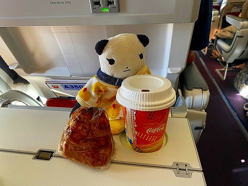 - 機内のスープいただきまーす