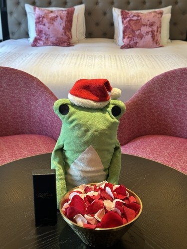 - ピンクのXmasツリーとサンタ帽子で記念写真♡